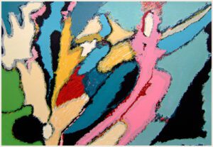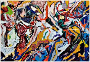 Hace diez años los “Cúmulos”, dibujos o acrílicos de fuerte estructuración del plano pictórico en áreas, unas veces geometrizantes y otras de fuerte organización orgánica, advertían de un rigor en el diseño que establecía jerarquías entre los colores y los tonos empleados. En una medida muy real se convertían en paisajes líricos o expresivos, de fuga o aglutinación de los colores, o los trazos del lápiz sobre la superficie del lienzo o el papel. La dialéctica entre los trazos gestuales y los rectángulos o cubos cerebrales, que se apropiaban un rol intelectualizante, afirmaba un drama entre los sentimientos y el pensamiento.