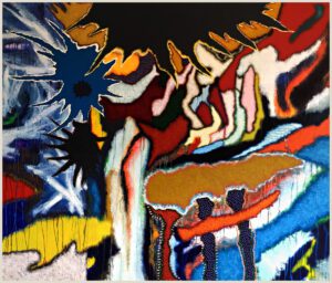 Lyotard habla de un saber narrativo –una verdad que nos llega a través del cuento y sus metáforas– que es tan válido como el saber científico. Cecilio Colón Guzmán es un visionario que quiere (y tiene) que contarnos sus preocupaciones. Uno de los discursos a su disposición, quizás el más agudo, es la pintura –una pintura poderosa y original donde el color, los símbolos, las formas y la posibilidad de la metáfora convierten al público en coautores de unos cuentos necesarios-