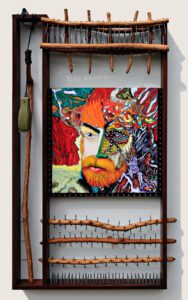 Un tríptico que lleva por nombre Hipnotizada ofrece una clave para entender y apreciar lo que se nos ofrece en las ocho obras de la presente exhibición de Cecilio Colón Guzmán, Somos, en la Galería Botello de Hato Rey. El panel de la izquierda es representativo de su obra abstracta, que durante largos años ha proyectado una atrevida dinámica de brillante colorismo saturado, aplicado en trazos y esquemas formales que sugieren una inminente eclosión, o inicio de vida, un “big bang” que anticipa el orden y las jerarquías que siguen al caos originario. Separado por un estrecho panel de madera en el que se encuentran incrustadas diez monedas de diez centavos americanos, cuidadosamente colocadas para que se lea, horizontalmente, la palabra Liberty, sigue otro diseño abstracto, pero en este caso depurado de los matices primarios y secundarios del anterior, limitándose a tonalidades neutrales, areniscas y verde-