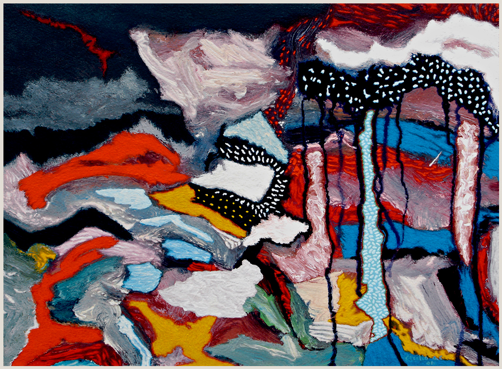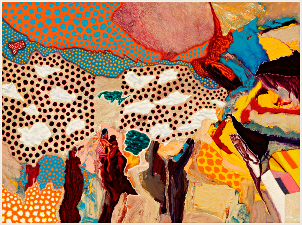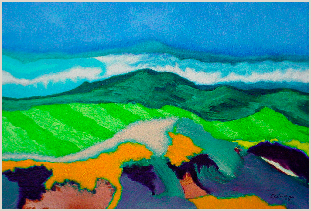 Cecilio Colón Guzmán (Barranquitas, 1959) ha sido siempre un artista de gran talento y verdadero profesionalismo. El discurso estético que ha venido desarrollando por muchos años ya —composiciones abstractas en las que lo orgánico, carnavalesco y pop ha sido siempre respetado, pero no ha logrado ser aceptado abiertamente por muchos— (aunque a este crítico le encantan los misterios de sus antiguas composiciones). Con esta exposición y desde una madurez y honestidad reales, Colón Guzmán entra en una nueva etapa: más suave, atractiva, más bella. Sus nuevas composiciones pueden ser vistas como hermosos paisajes llenos de la magia y el lirismo que definen las bellezas de Puerto Rico. Sus mares, valles y montañas son sueños que nos recuerdan que afortunadamente nos quedan muchos de estos regalos visuales.