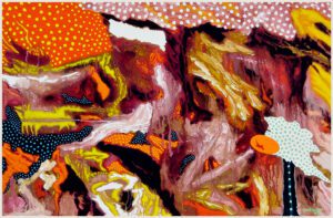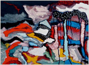 Por su parte, Mariestella Colón Astacio (Hato Rey, l960), que nos ha asombrado y seducido con la frescura y las profundidades de su sintaxis estética, ha vuelto a entusiasmarnos con su nueva y generosa (debió haber sido mejor editada) exposición (auspiciada por la Galería Pamil). La artista vuelve a invitarnos a sus planetas, topografías, poemas, definidos por un lirismo orgánico muy suyo. Sus composiciones, que se pueden ver como planetas o encajes postmodernos, nos obligan a reaccionar. En estas nuevas obras, más complejas, barrocas y profundas, Colón Astacio nos hace claro que su propuesta estética está madurando con gran efectividad, y que sus espacios son cada vez más mágicos.